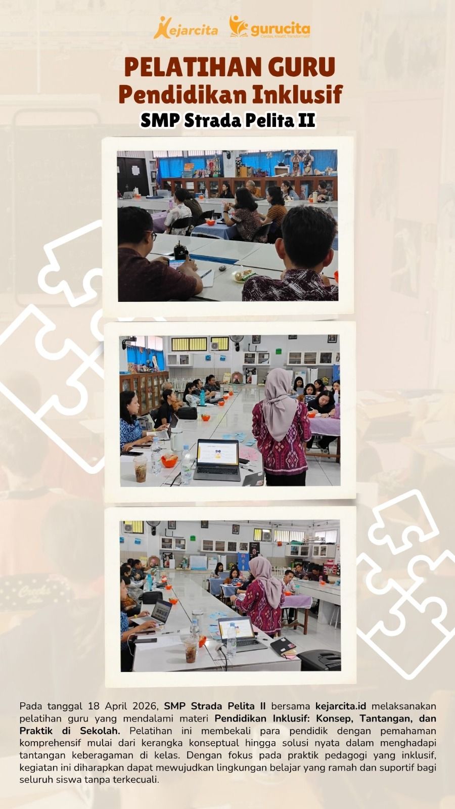 Untuk mendukung hal tersebut, guru juga perlu terus mengembangkan kompetensinya melalui berbagai pelatihan dan sumber belajar yang relevan. Kejarcita hadir sebagai salah satu solusi dengan menyediakan pelatihan pembelajaran diferensiasi dan kelas inklusif yang dirancang praktis dan aplikatif. Selain itu, kejarcita juga menyediakan berbagai materi pembelajaran dan bank soal yang dapat membantu guru dalam mengakomodasi kebutuhan siswa dengan lebih efektif. Dengan dukungan yang tepat, guru dapat lebih mudah menciptakan pembelajaran yang tidak hanya efektif, tetapi juga adil dan inklusif bagi seluruh siswa.