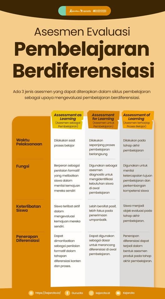Penilaian dalam pembelajaran berdiferensiasi tidak hanya dilakukan di akhir, tetapi dilakukan secara berkelanjutan (formatif) selama proses belajar berlangsung.