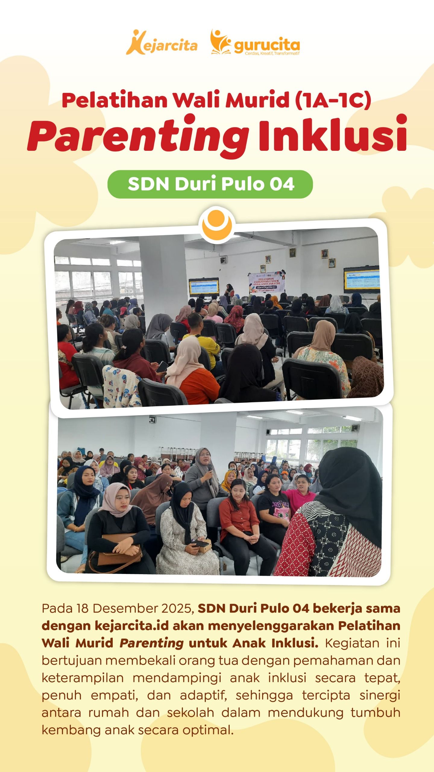 Melalui program seperti pelatihan parenting inklusi yang pernah diselenggarakan oleh kejarcita, sekolah dan orang tua dapat saling berkolaborasi dalam mendukung kebutuhan belajar anak secara lebih tepat. Jika dilakukan secara bersama-sama, langkah ini akan menjadi fondasi kuat dalam menciptakan pendidikan yang benar-benar berkualitas dan merata. Untuk sekolah atau komunitas yang ingin mengadakan pelatihan serupa, kejarcita juga menyediakan berbagai program pelatihan yang dapat disesuaikan dengan kebutuhan, mulai dari parenting, pembelajaran inklusif, hingga penguatan kapasitas guru. Segera hubungi kejarcita untuk mendapatkan informasi lebih lanjut dan mulai wujudkan lingkungan belajar yang lebih baik.
