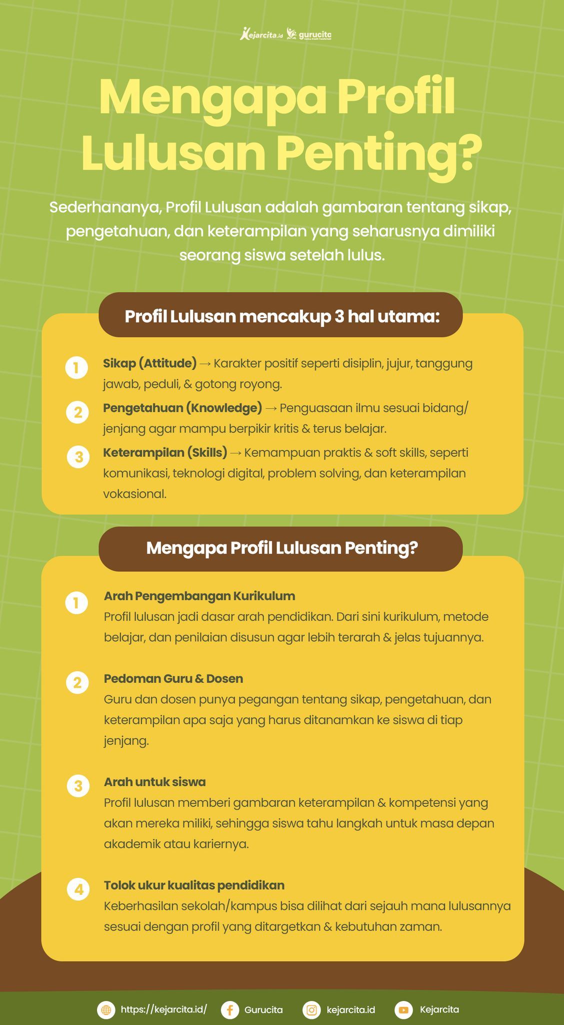 Bukan cuma soal nilai akademik, Profil Lulusan juga tentang siapa & seperti apa siswa setelah lulus. Buat guru/dosen, profil lulusan bisa jadi panduan mengajar. Buat sekolah/kampus, bisa jadi tolok ukur kualitas pendidikan. Dan buat siswa, profil lulusan bisa jadi kompas masa depan. Yuk, kenali lebih dalam tentang Profil Lulusan lewat postingan ini!
