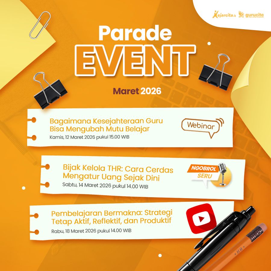Gurucita & Teman Kece, di bulan Maret ini kejarcita menghadirkan berbagai event menarik yang sayang banget untuk dilewatkan! Mulai dari webinar, IG Live, sampai YouTube Live dengan topik-topik menarik dan tentunya narasumber yang inspiratif. Cocok banget buat ngabuburit sambil upgrade ilmu dan diri.