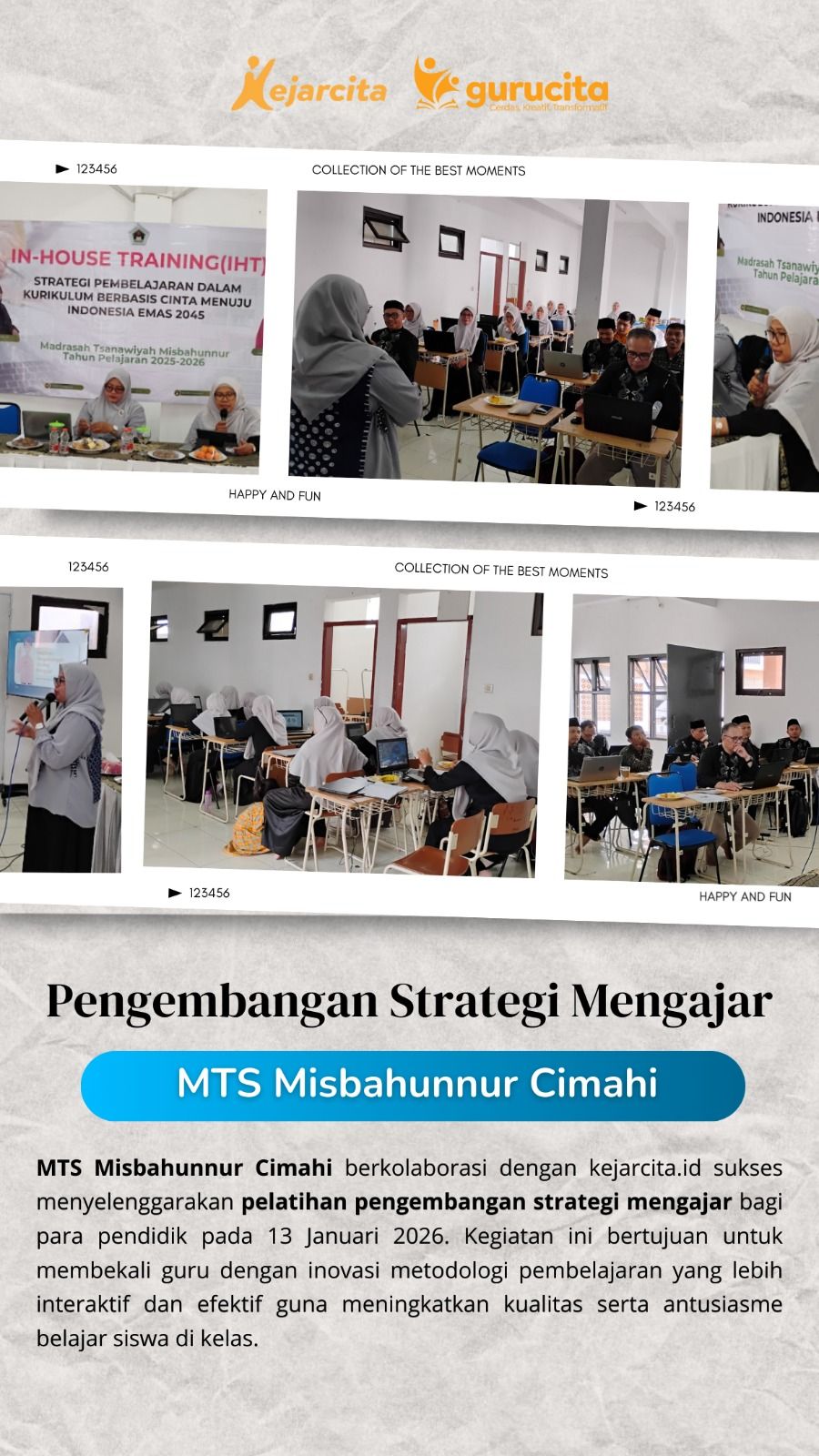 Penerapan berbagai metode seperti Project Based Learning, Problem Based Learning, Inquiry Based Learning, hingga Design Thinking semakin memperkaya proses pembelajaran sehingga dapat diterapkan pada berbagai jenjang pendidikan dengan beragam contoh implementasi yang kontekstual. Untuk mendukung keberhasilan penerapan pembelajaran inovatif tersebut, kejarcita telah menghadirkan berbagai pelatihan strategi mengajar yang membantu guru mengelola pembelajaran secara lebih efektif, interaktif, dan berpusat pada siswa.