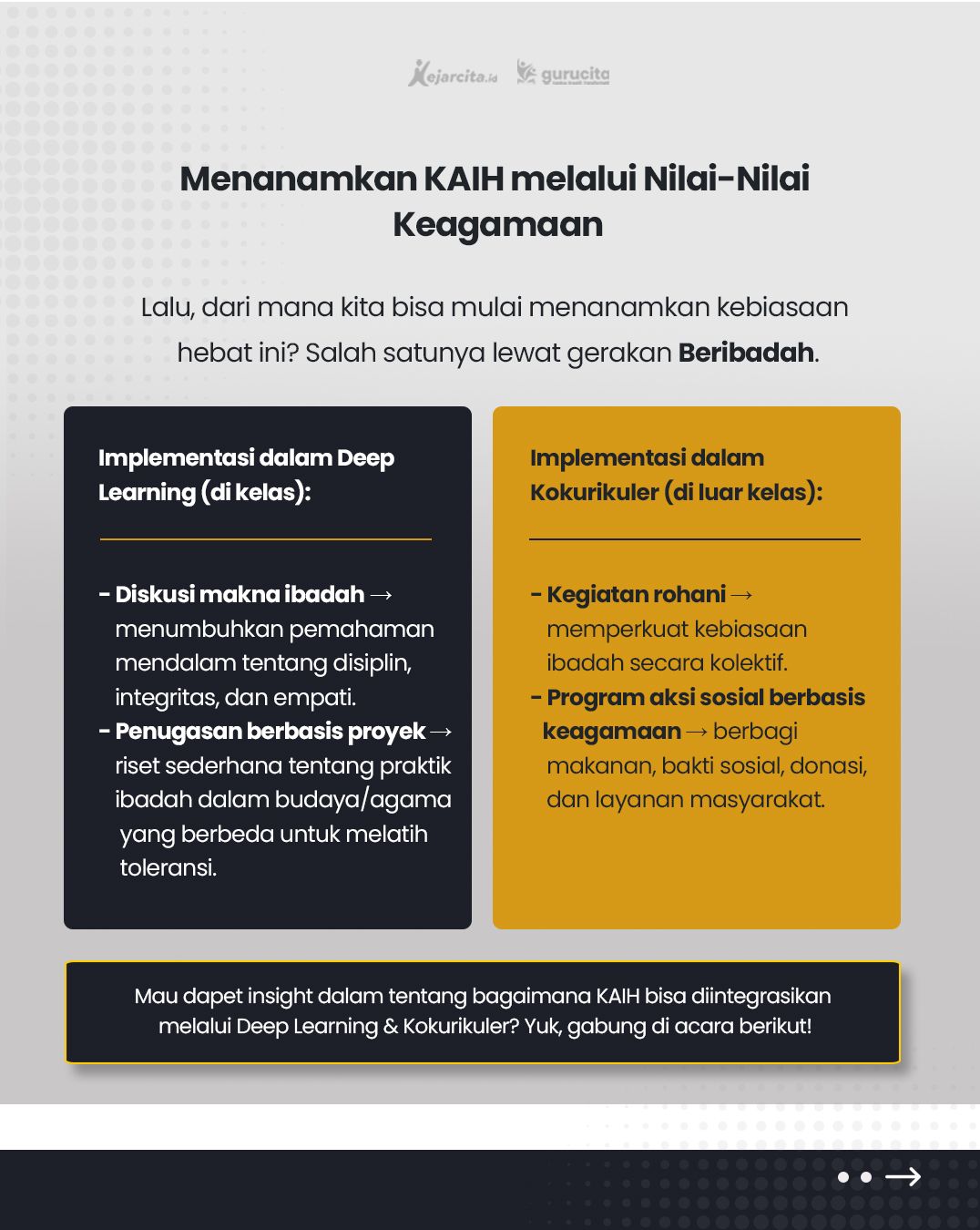 kejarcita.id bersama @iwise_edu_id akan kupas tuntas lewat Webinar Kebiasaan Anak Indonesia Hebat: Integrasi Pendekatan Deep Learning & Kokurikuler di Sekolah. Insight praktis langsung bisa diterapkan di kelasTunggu apa lagi? Yuk, segera daftar sekarang juga! Klik link bit.ly/WebinarKCxIwiseSept25. Sampai ketemu di webinar, Gurucita!